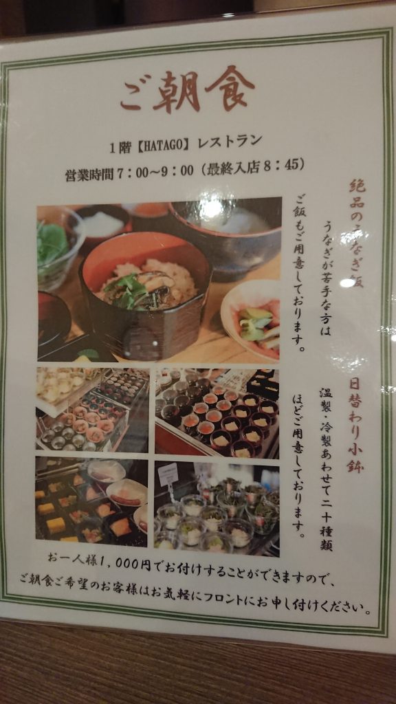 - 品数は少ないながらもうなぎ飯が名物の朝食バイキング